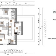 Dachy: dwuspadowe w konstrukcji drewnianej, ocieplone pianą; pokrycie blachą PREFA na rąbek stojący.