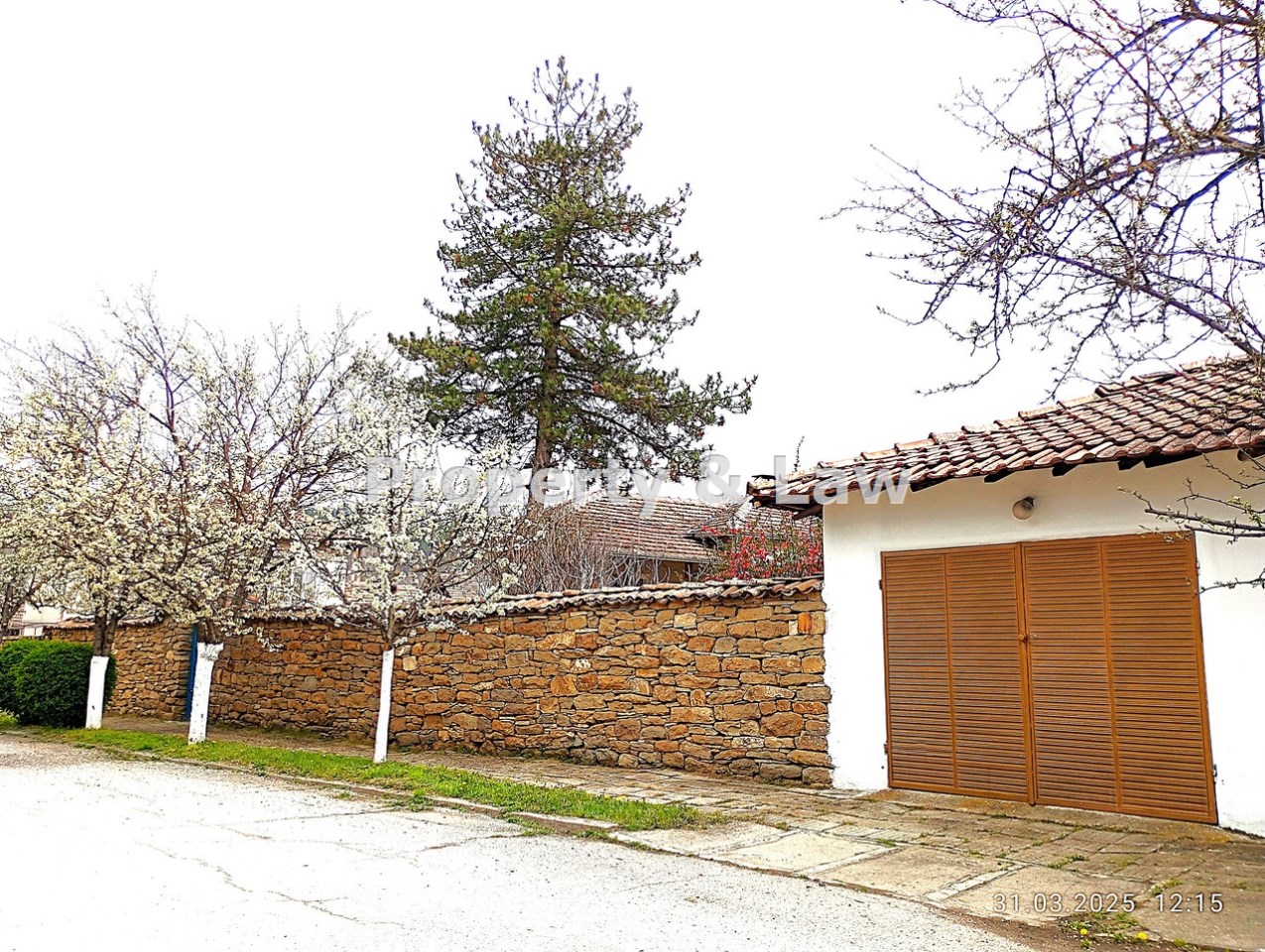 Działka otoczona jest wysokim kamiennym murem, co zapewnia prywatność i wyjątkowy charakter posesji. Na jej terenie znajduje się piękny, owocujący sad z licznymi nasadzeniami, m.in. jabłoniami, gruszami, morelami, pigwami, śliwami, czereśniami, figami, dereniem, miłorzębem oraz zielonymi i czarnymi winogronami. Ogród został starannie zagospodarowany — znajduje się tu również część kwiatowa, warzywna, krzewy owocowe oraz dwie studnie. Nieruchomość posiada dwa wjazdy, a dojazd odbywa się drogą utwardzoną.